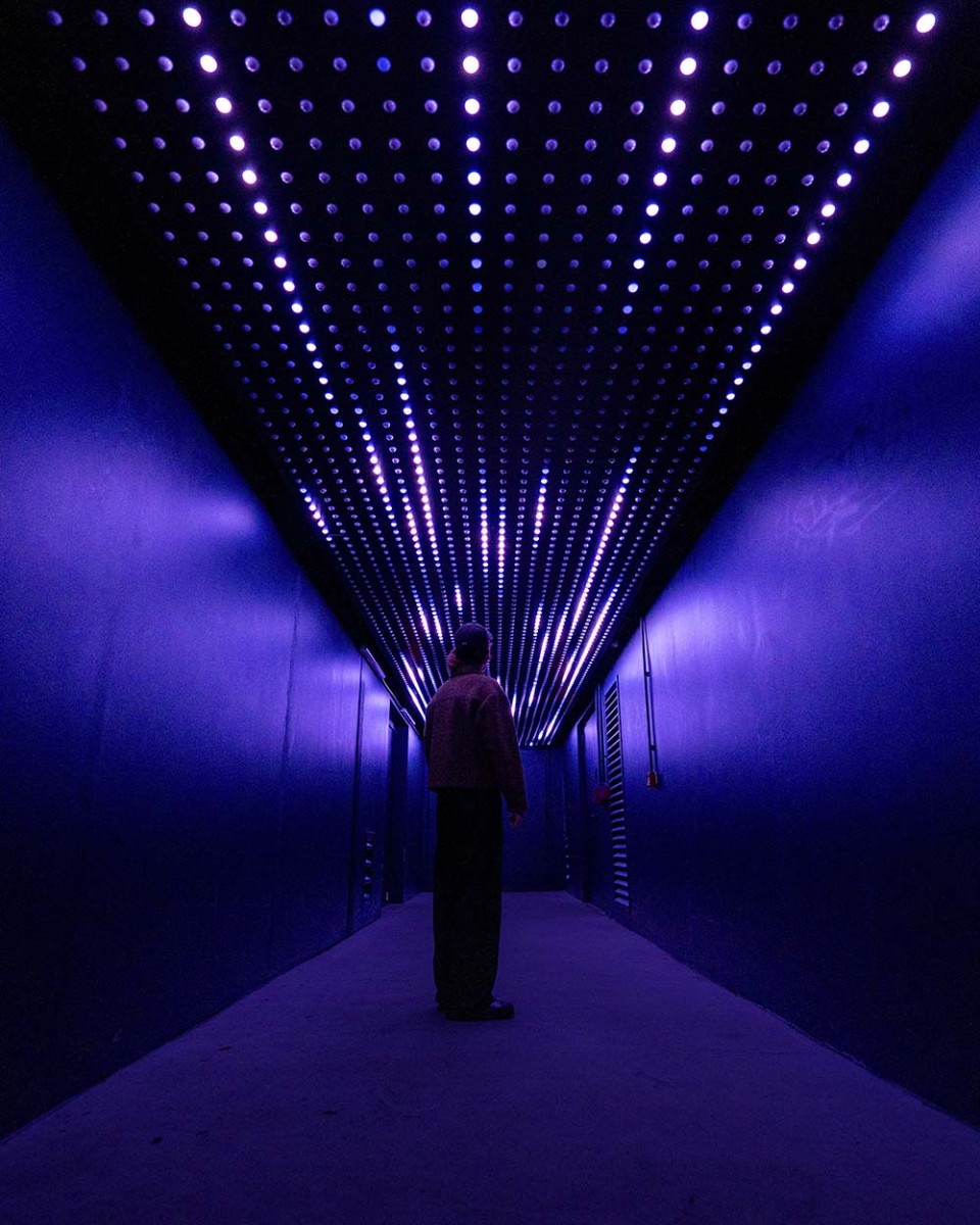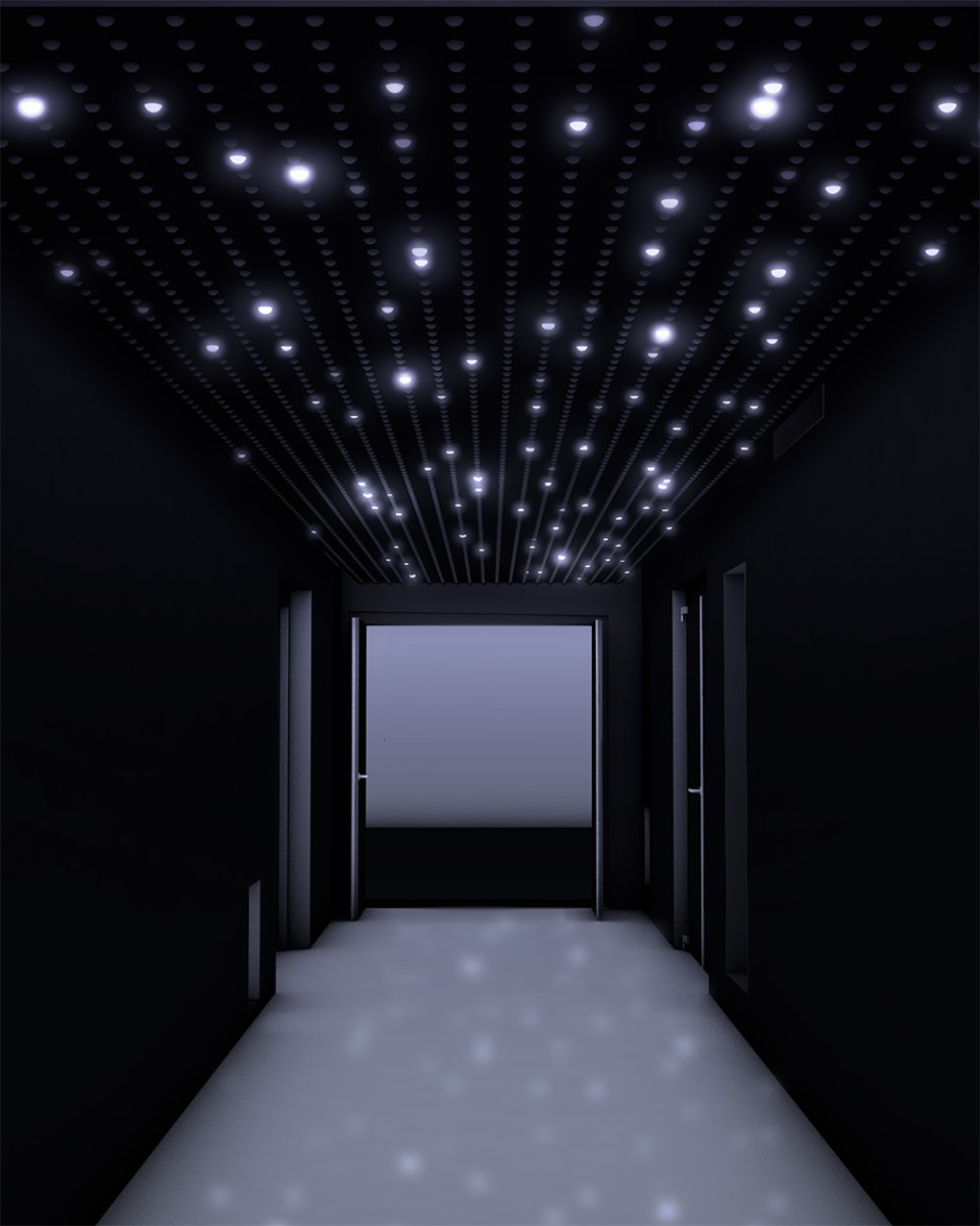 Dots est une installation immersive imaginée par Tetro et l’artiste Nicolas Paolozzi. À la manière d’un ciel étoilé en perpétuelle métamorphose, les points lumineux composent un paysage mouvant au-dessus des visiteurs, transformant le couloir d’accès de la salle de spectacle Fiducial Asteria en un espace de transition contemplatif.